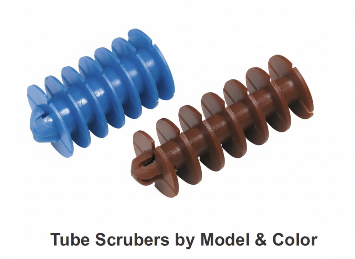 In most cases hard tube scrubber are recommended for removing light to medium deposits in condensers